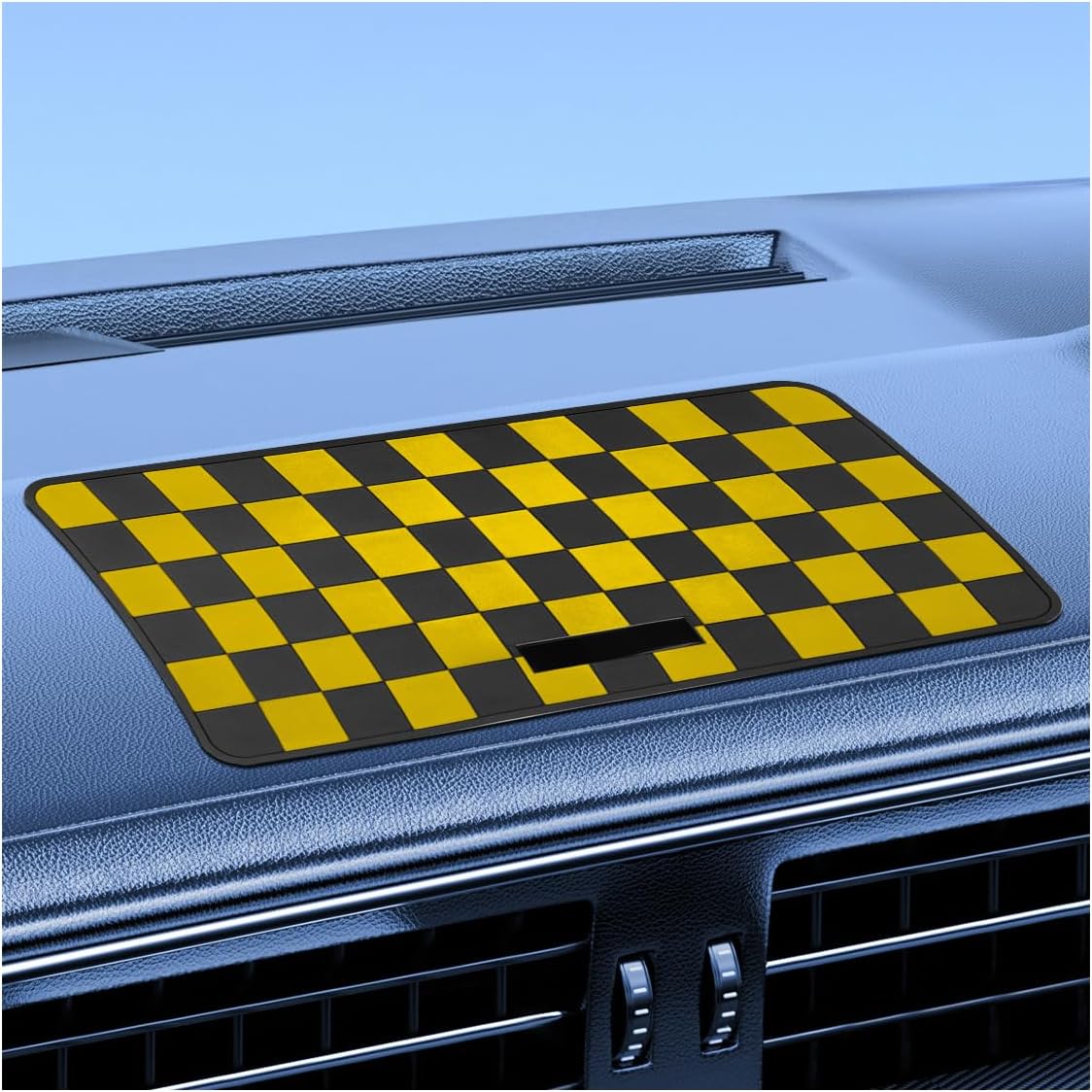Car Dashboard Non-Slip Mat, 11.22″ x 5.76″ Multi-Functional TPU Sticky Gripping Pad for Phone Keys Sunglasses GPS, Universal Adhesive Vehicle Dash Grid Mat for SUV RV Truck (Black/Yellow)